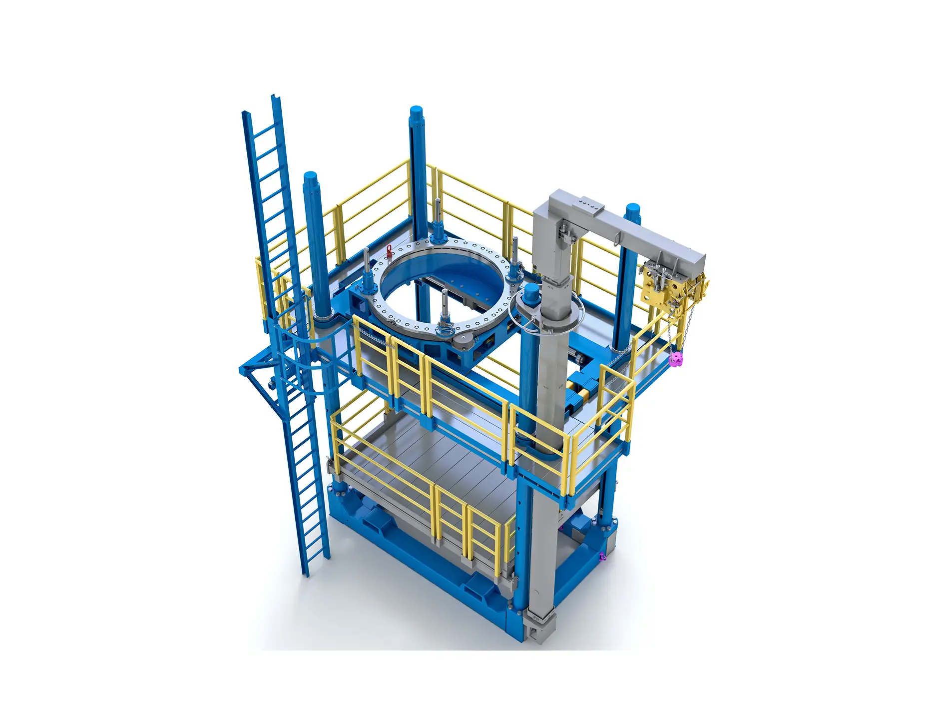 This spindle-based injector handling system gives the user a significant safer working environment and a accurate movement as the injector is moved up and skidded on synchronized self-locking spindles.